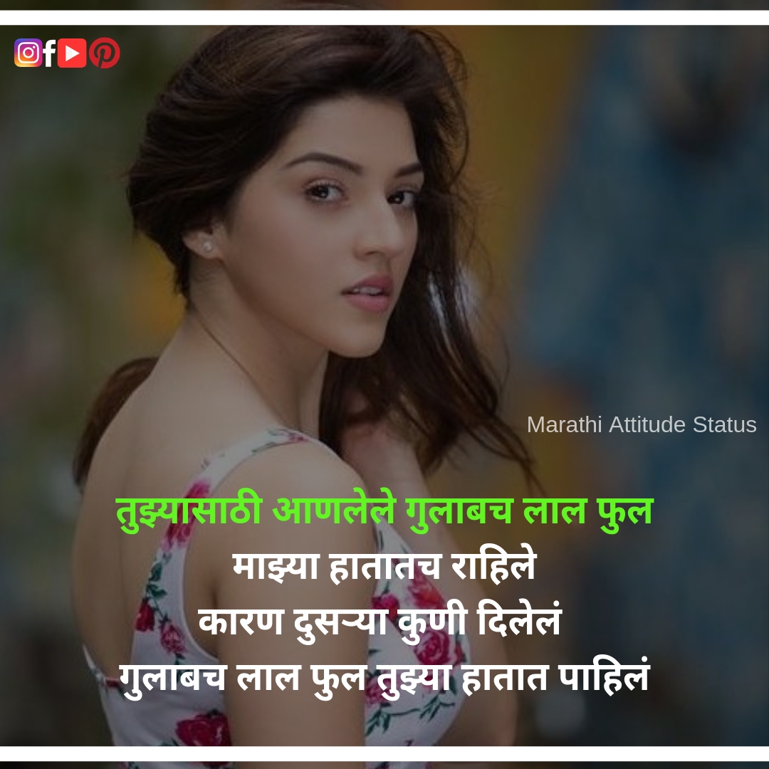 तुझ्यासाठी आणलेले गुलाबाचे लाल फुल माझ्या हातातच राहिलं,कारण दुसऱ्या कुणी दिलेलं गुलाबाचं फुल तुझ्या हातात पाहिलं