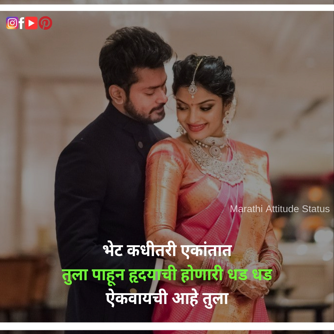 Love Quotes In Marathi नमस्कार मित्रांनो.आपले या Love Quotes King च्या नव्या पोस्ट मध्ये स्वागत आहे.इथे आपल्याला मिळतील प्रेमाच्या अशा ओळी,अशा कविता ज्या आपल्याला इतर कुठेही मिळणार नाहीत.तुम्ही प्रत्येक वेळी तुमच्या प्रेयसीला प्रियकराला इंप्रेस करण्यासाठी ती किंवा तो रुसला असेल तरं मनवण्यासाठी वेगवेगळ्या Love Quotes किंवा Love Status च्या शोधात असता तरं तुम्हाला ह्या वेबसाईट वरं सर्व प्रकारचे Unique Love Status पाहायला कॉपी करायला आणि तुमच्या प्रियसीला तुमच्या प्रियकराला Share करायला मिळतील, Facebook Instagram Whatsapp किंवा कोणत्याही Social Media Platform वर Share करू शकता .मित्रांनो हे Love Quotes तुमच्या मित्रांना Share करा.Love Quotes In Marathi