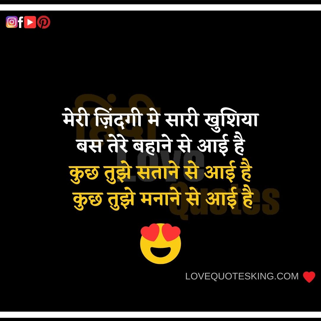 मेरी ज़िंदगी मे सारी खुशिया बस तेरे बहाने से आई है कुछ तुझे सताने से आई है कुछ तुझे मनाने से आई है
