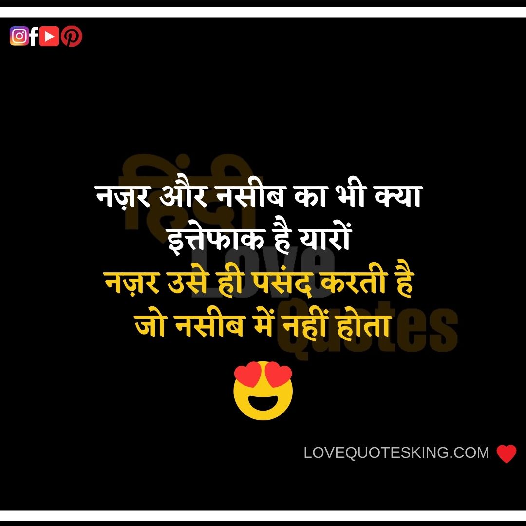 नज़र और नसीब का भी क्या इत्तेफाक है यारों नज़र उसे ही पसंद करती है जो नसीब में नहीं होता