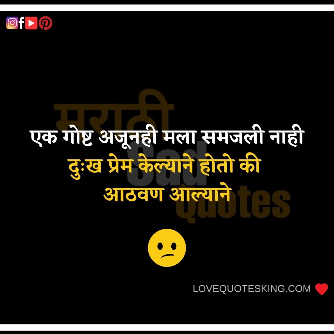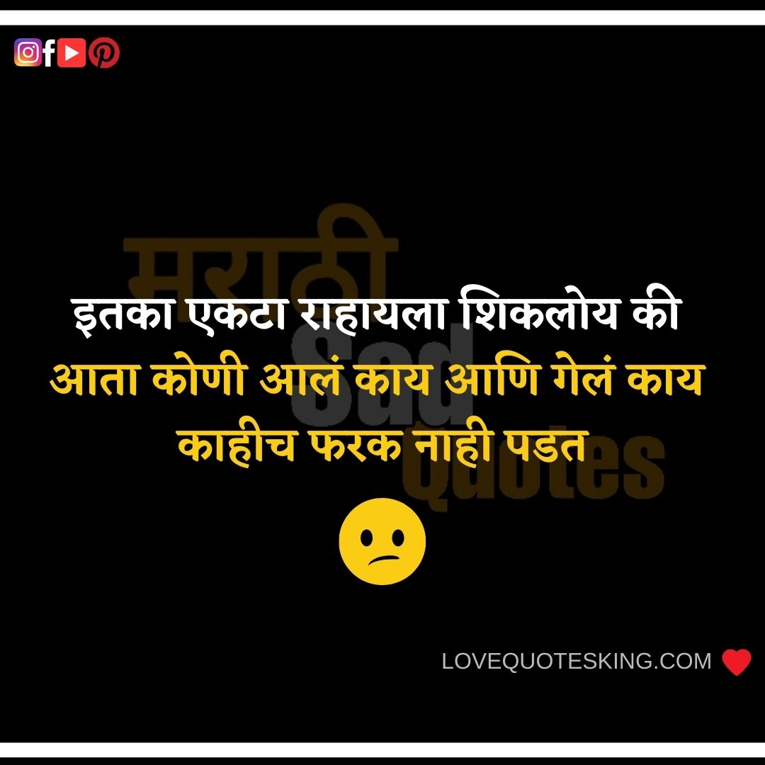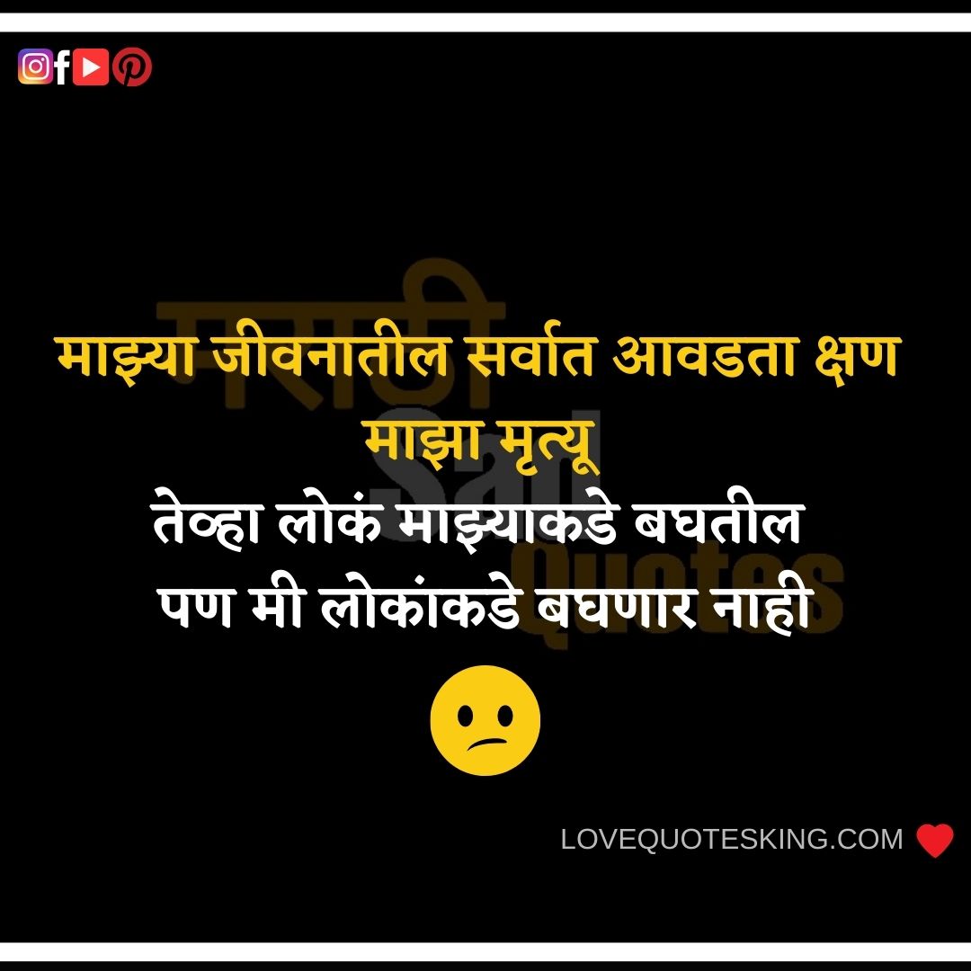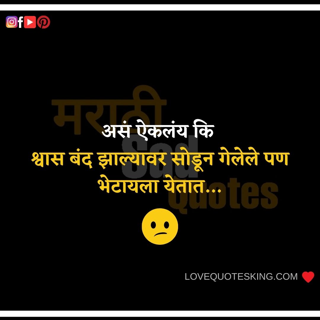 Marathi Sad Quotes On Life-जीवनात घडलेल्या घटनांवरील मराठी Sad Quotes 2020 | Sad Images Marathi | Sad Shayari Marathi – आपल्या जीवनात काही असे प्रसंग येतात की आपण निराश होतो तेव्हा आपले जवळचे आपल्याला आधार देतात . Sad Images Marathi प्रत्येकजणच अशा प्रसंगातून जात असतो .ह्या अशाच प्रसंगात आपल्या मनाची असणारी अवस्था ह्या Marathi Sad Quotes मधुन सांगितली आहे .हे सर्व Sad Quote आपल्या मित्रांना share करायला विसरू नका.Sad Shayari Marathi