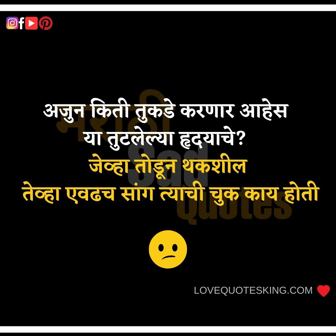अजुन किती तुकडे करणार आहेस या तुटलेल्या हृदयाचे? जेव्हा तोडून थकशील तेव्हा एवढच सांग त्याची चुक काय होती…