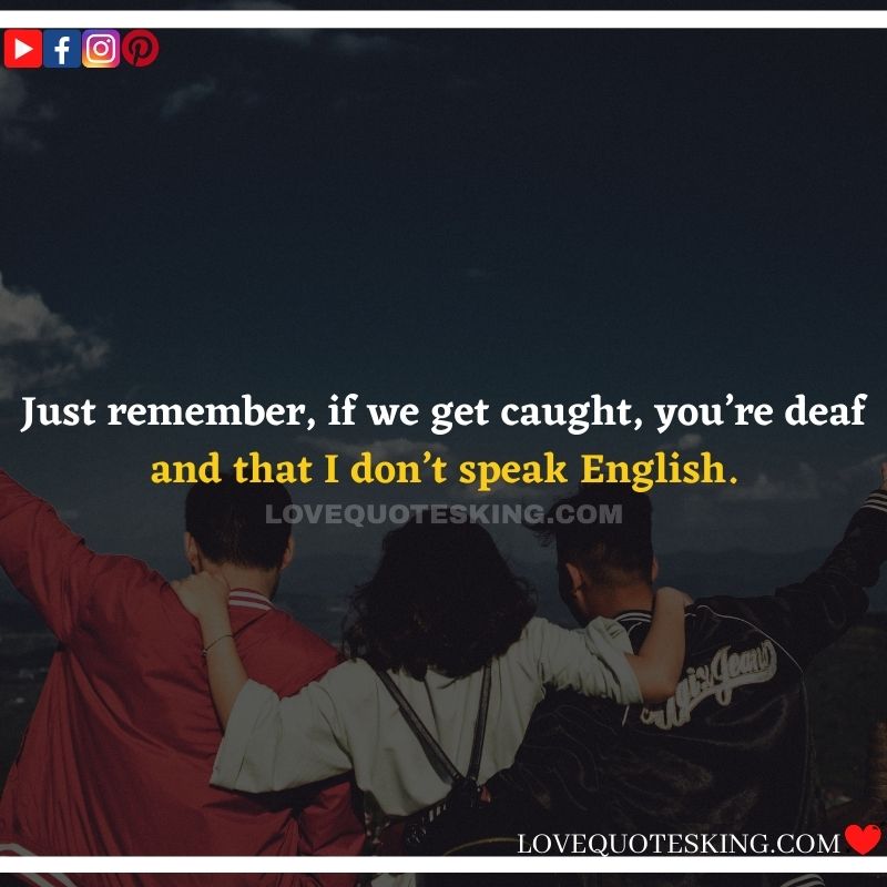 Just remember, if we get caught, you’re deaf and that I don’t speak English.