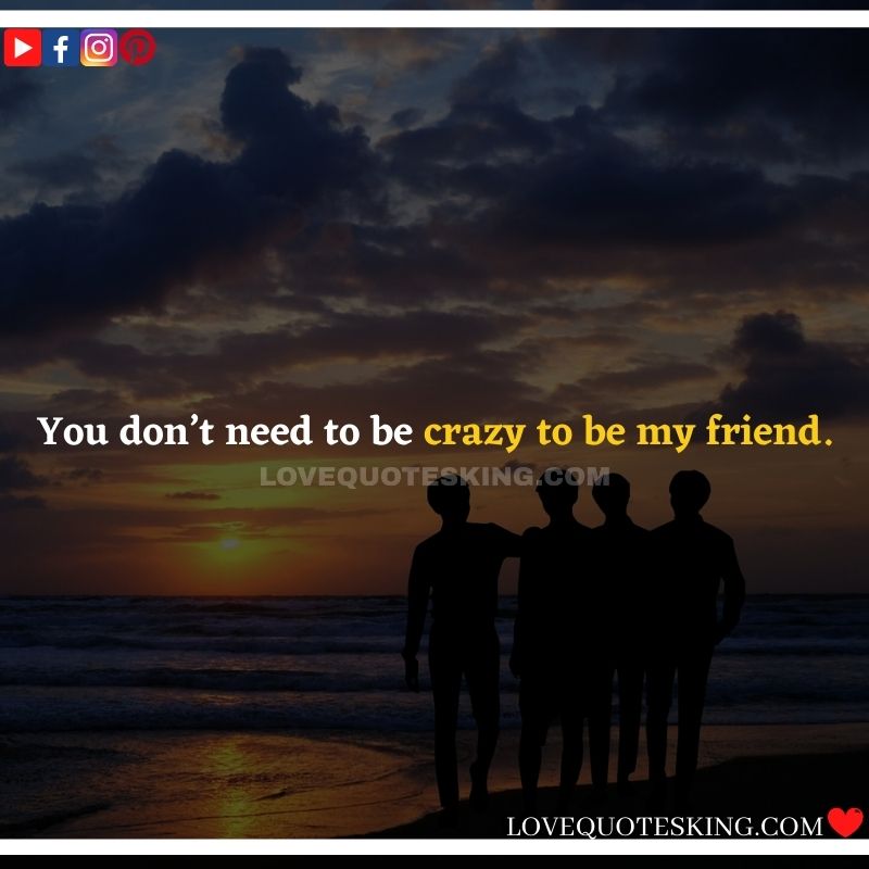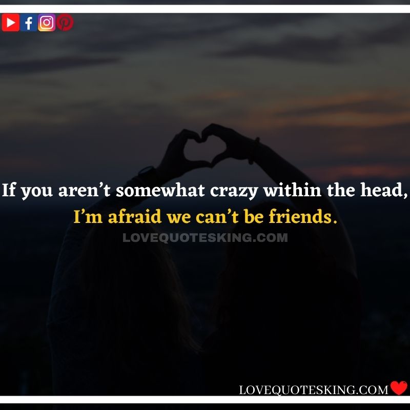 If you aren’t somewhat crazy within the head, I’m afraid we can’t be friends.