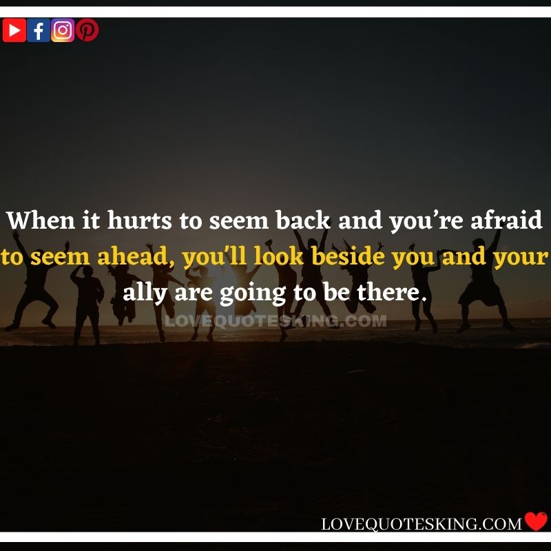 When it hurts to seem back and you’re afraid to seem ahead, you’ll look beside you and your ally are going to be there.
