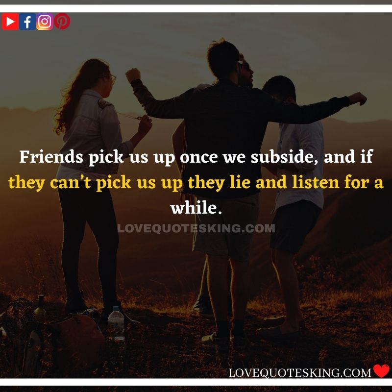 Friends pick us up once we subside, and if they can’t pick us up they lie and listen for a while.
