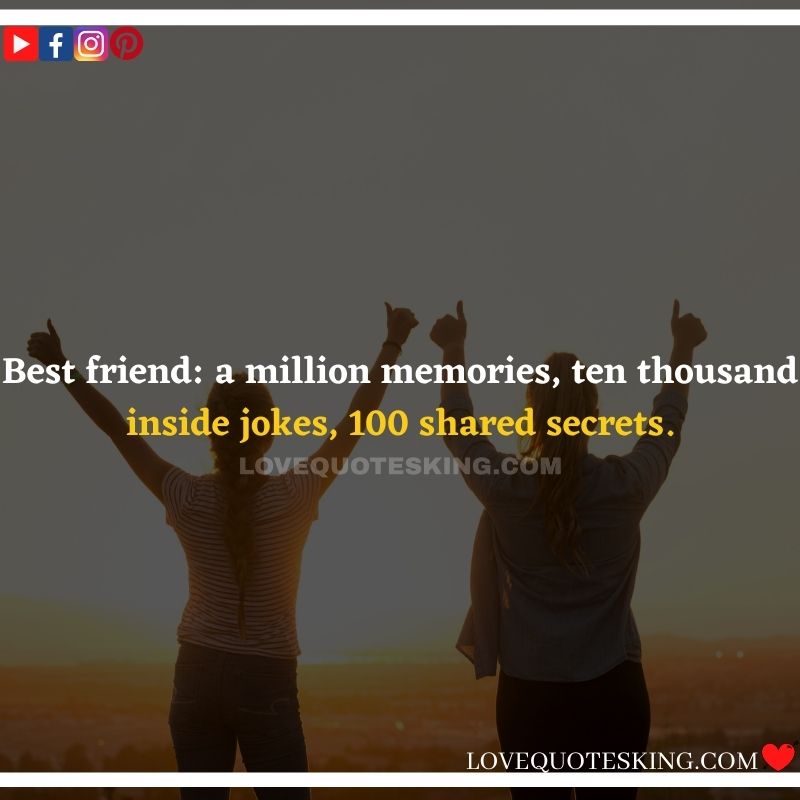 Best friend: a million memories, ten thousand inside jokes, 100 shared secrets.