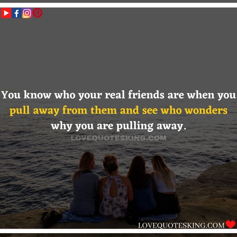 You know who your real friends are when you pull away from them and see who wonders why you are pulling away.