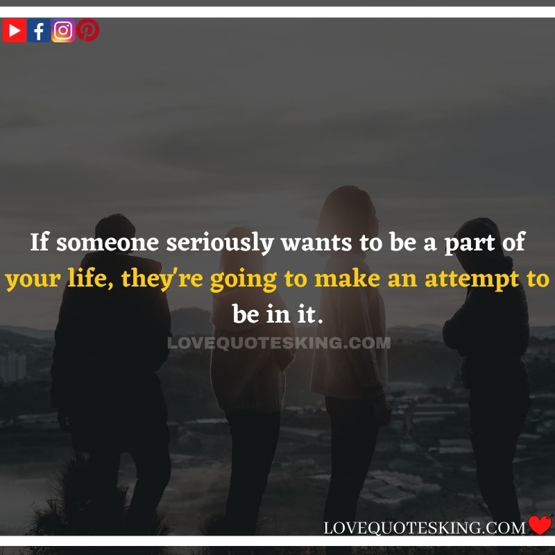 If someone seriously wants to be a part of your life, they’re going to make an attempt to be in it.