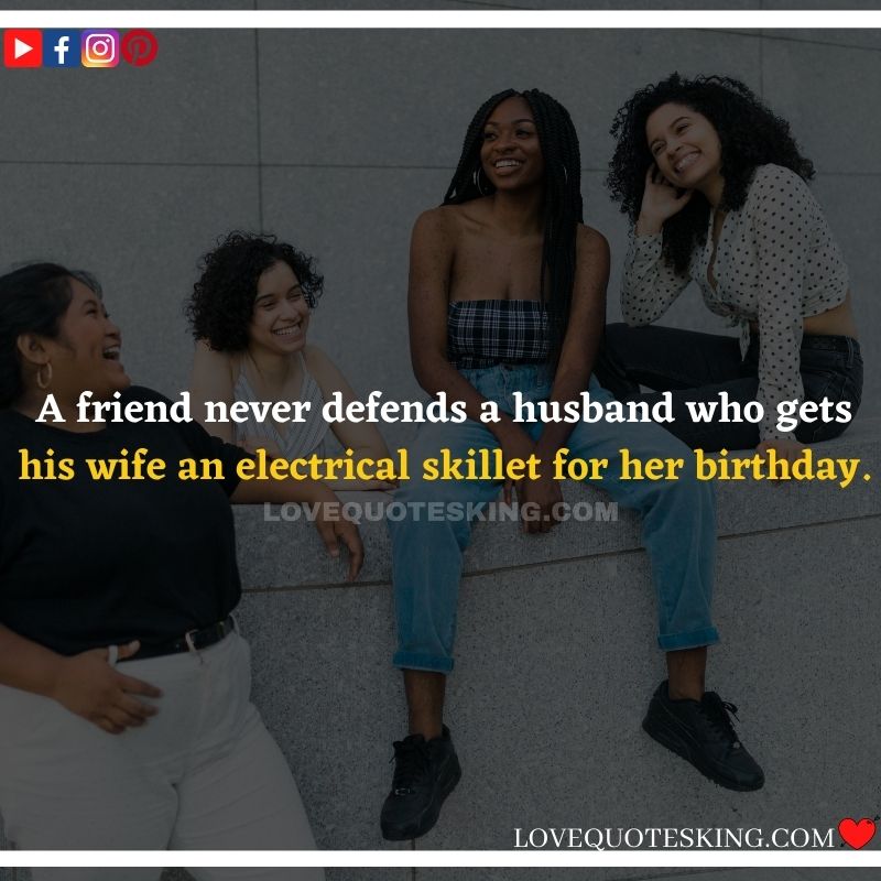 A friend never defends a husband who gets his wife an electrical skillet for her birthday.