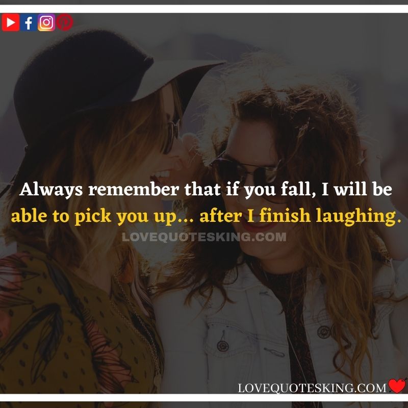 Always remember that if you fall, I will be able to pick you up… after I finish laughing.