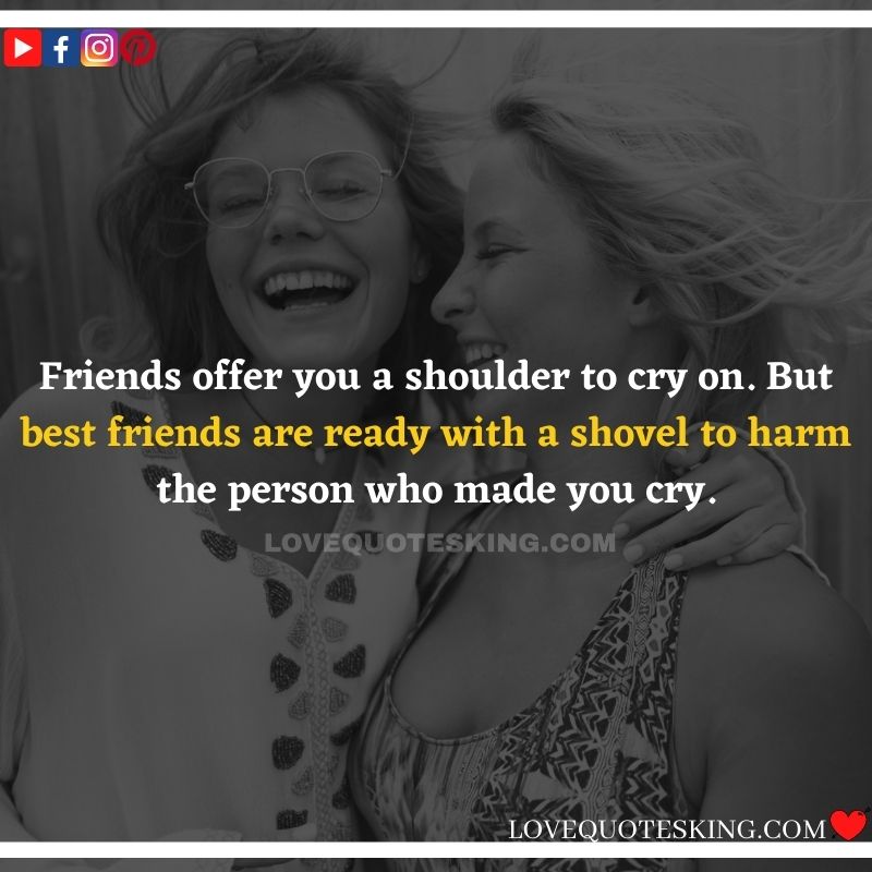 Friends offer you a shoulder to cry on. But best friends are ready with a shovel to harm the person who made you cry.