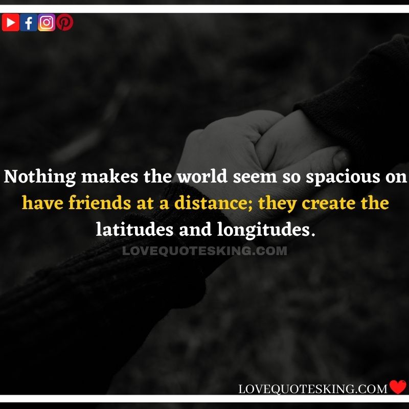 Nothing makes the world seem so spacious on have friends at a distance; they create the latitudes and longitudes.