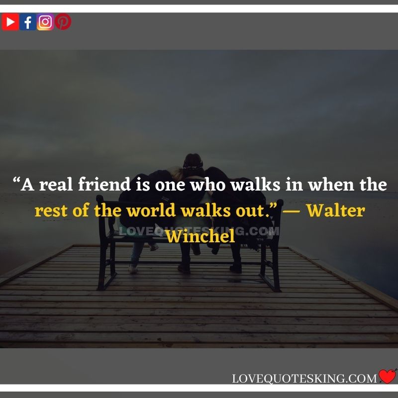 “A real friend is one who walks in when the rest of the world walks out.” — Walter Winchel