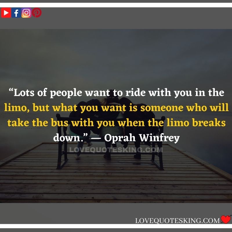“Lots of people want to ride with you in the limo, but what you want is someone who will take the bus with you when the limo breaks down.” — Oprah Winfrey