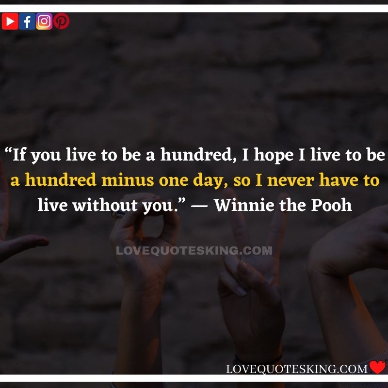 “If you live to be a hundred, I hope I live to be a hundred minus one day, so I never have to live without you.” — Winnie the Pooh