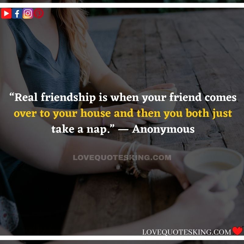 “Real friendship is when your friend comes over to your house and then you both just take a nap.” — Anonymous