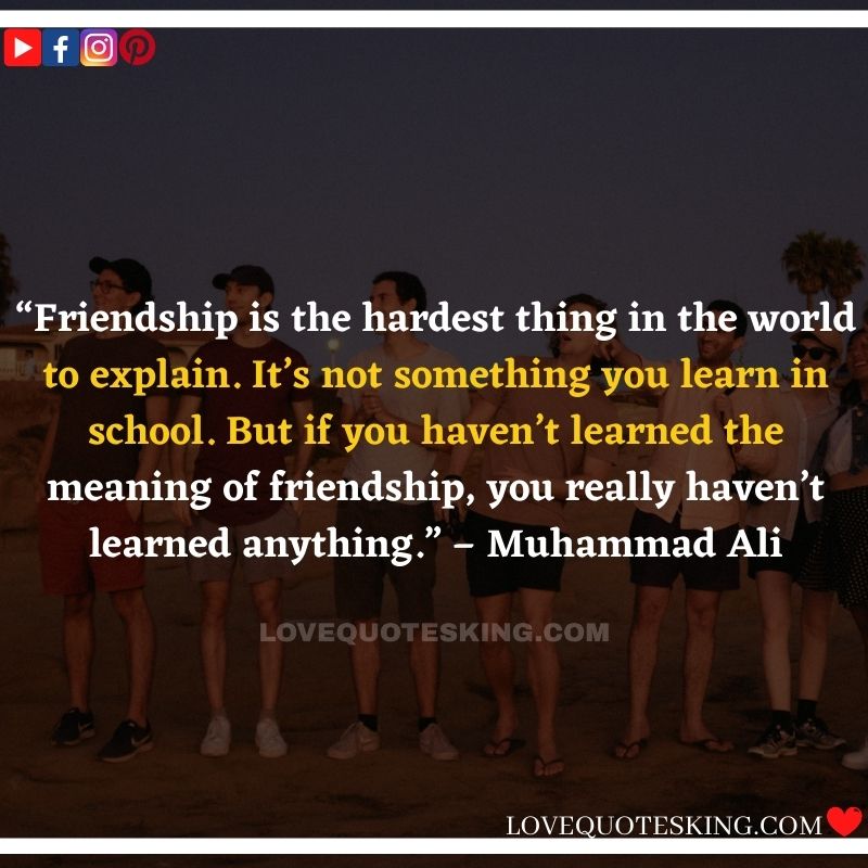 “Friendship is the hardest thing in the world to explain. It’s not something you learn in school. But if you haven’t learned the meaning of friendship, you really haven’t learned anything.” – Muhammad Ali