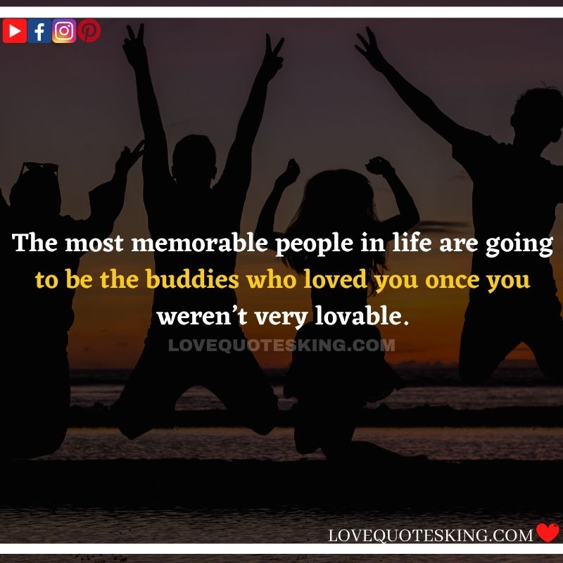 The most memorable people in life are going to be the buddies who loved you once you weren’t very lovable.