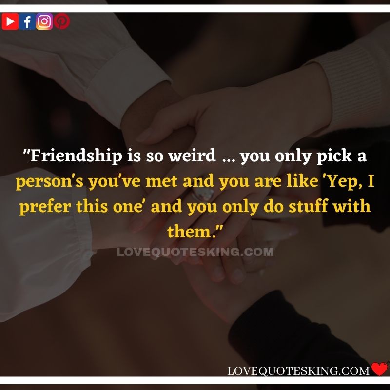 “Friendship is so weird … you only pick a person’s you’ve met and you are like ‘Yep, I prefer this one’ and you only do stuff with them.”