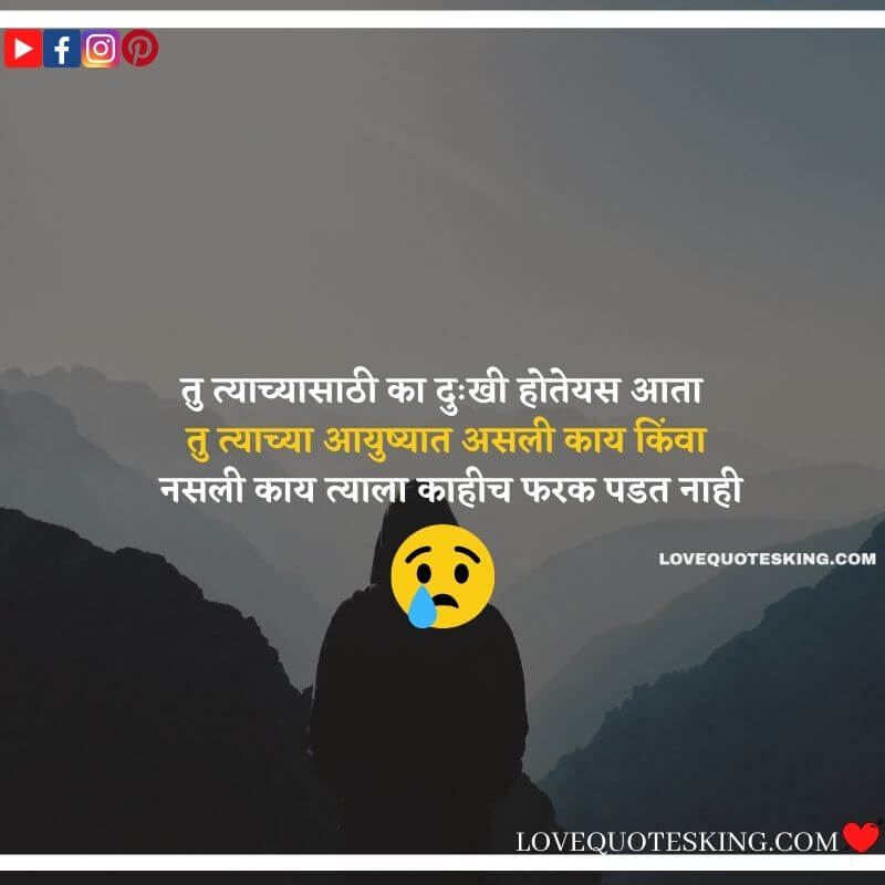 तु त्याच्यासाठी का दुःखी होतेयस आता तु त्याच्या आयुष्यात असली काय किंवा नसली काय त्याला काहीच फरक पडत नाही