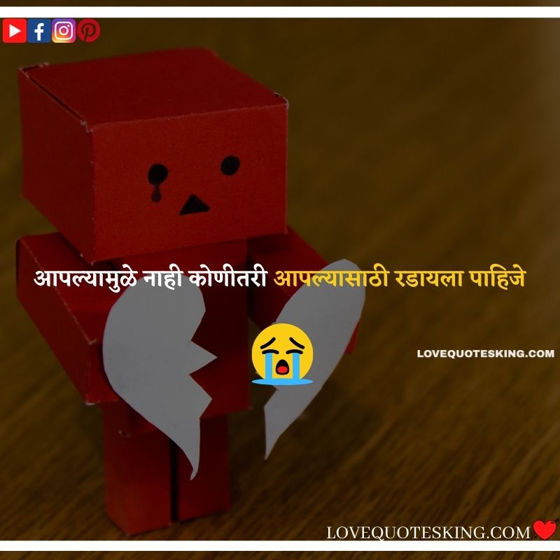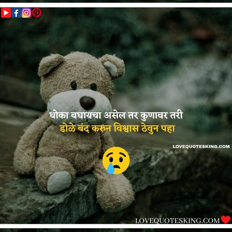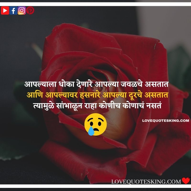 आपल्याला धोका देणारे आपल्या जवळचे असतात आणि आपल्यावर हसनारे आपल्या दूरचे असतात त्यामुळे सांभाळून राहा कोणीच कोणाचं नसतं