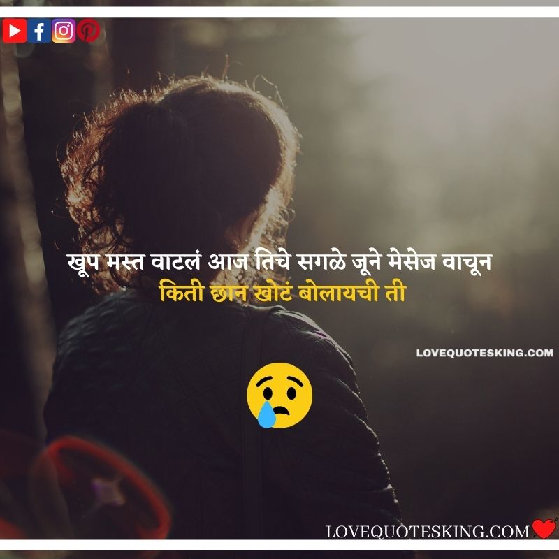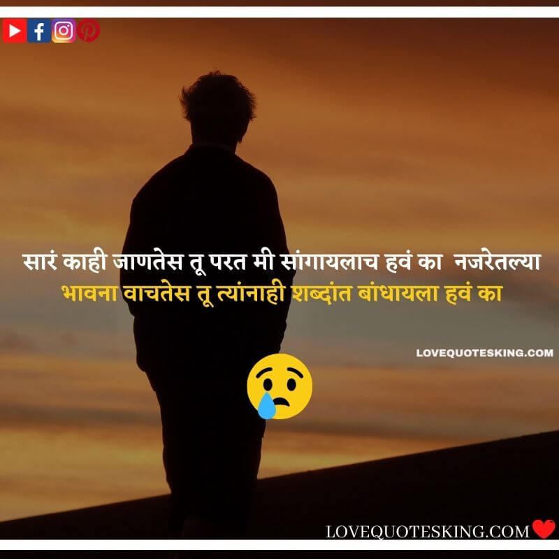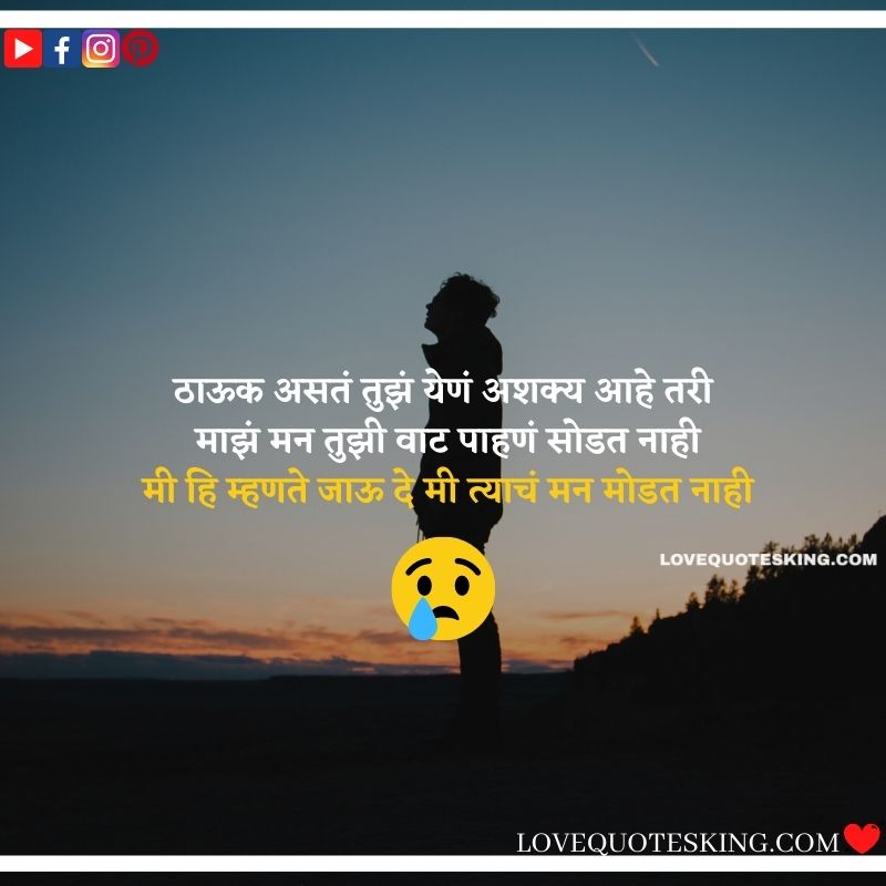 ठाऊक असतं तुझं येणं अशक्य आहे तरी माझं मन तुझी वाट पाहणं सोडत नाही मी हि म्हणते जाऊ दे मी त्याचं मन मोडत नाही