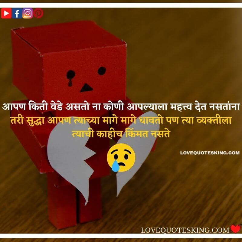 आपण किती वेडे असतो ना कोणी आपल्याला महत्त्व देत नसतांना तरी सुद्धा आपण त्याच्या मागे मागे धावतो पण त्या व्यक्तीला त्याची काहीच किंमत नसते