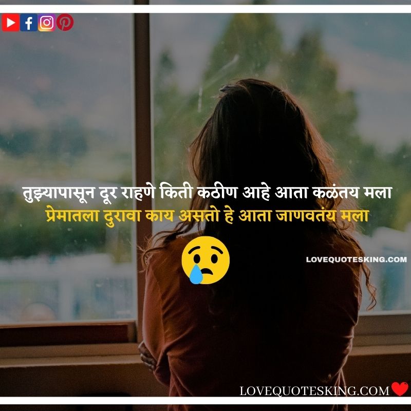 तुझ्यापासून दूर राहणे किती कठीण आहे आता कळंतय मला प्रेमातला दुरावा काय असतो हे आता जाणवतंय मला