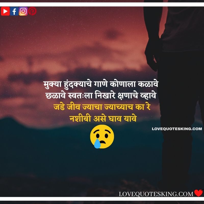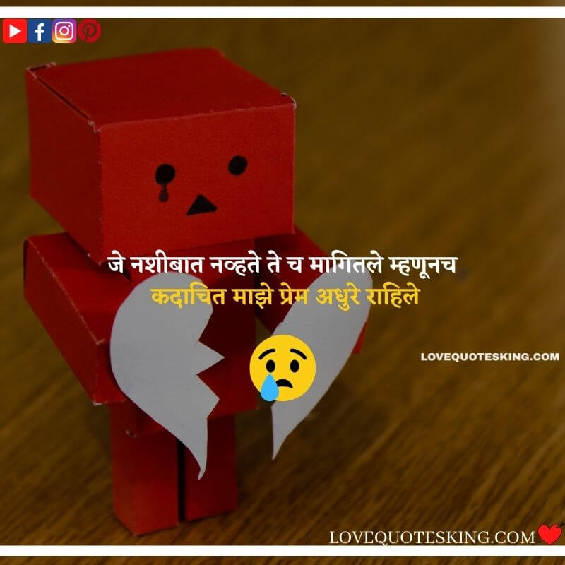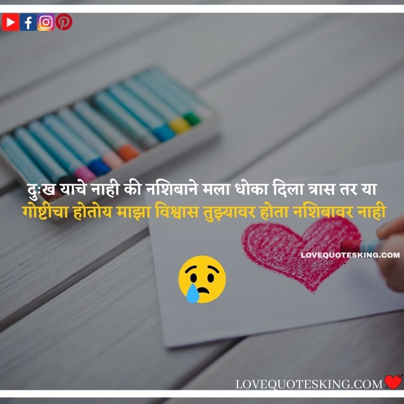 दुःख याचे नाही की नशिबाने मला धोका दिला त्रास तर या गोष्टीचा होतोय माझा विश्वास तुझ्यावर होता नशिबावर नाही