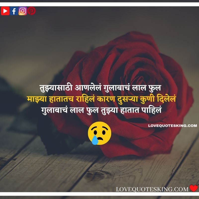तुझ्यासाठी आणलेलं गुलाबाचं लाल फुल माझ्या हातातच राहिलं कारण दुसऱ्या कुणी दिलेलं गुलाबाचं लाल फुल तुझ्या हातात पाहिलं
