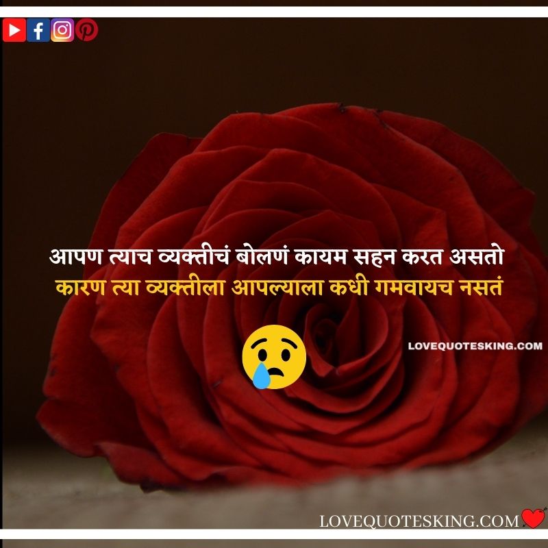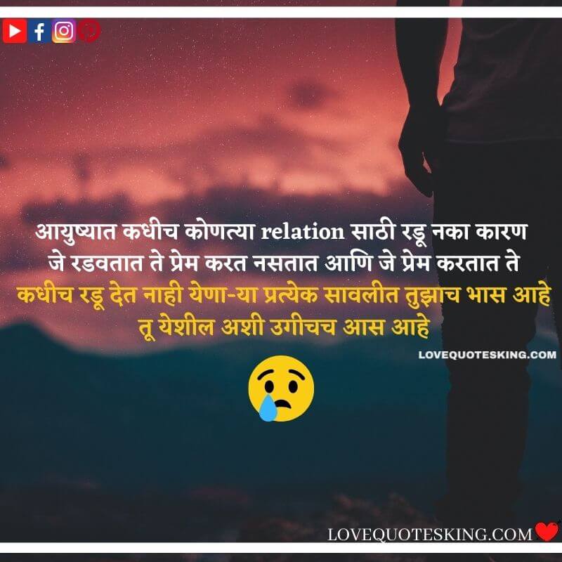 एक गोष्ट तर खरी आहे जेवढं आपण कोणावर जास्त प्रेम करतो ना तेवढं ती व्यक्ती आपल्याला जास्त रडवत असते