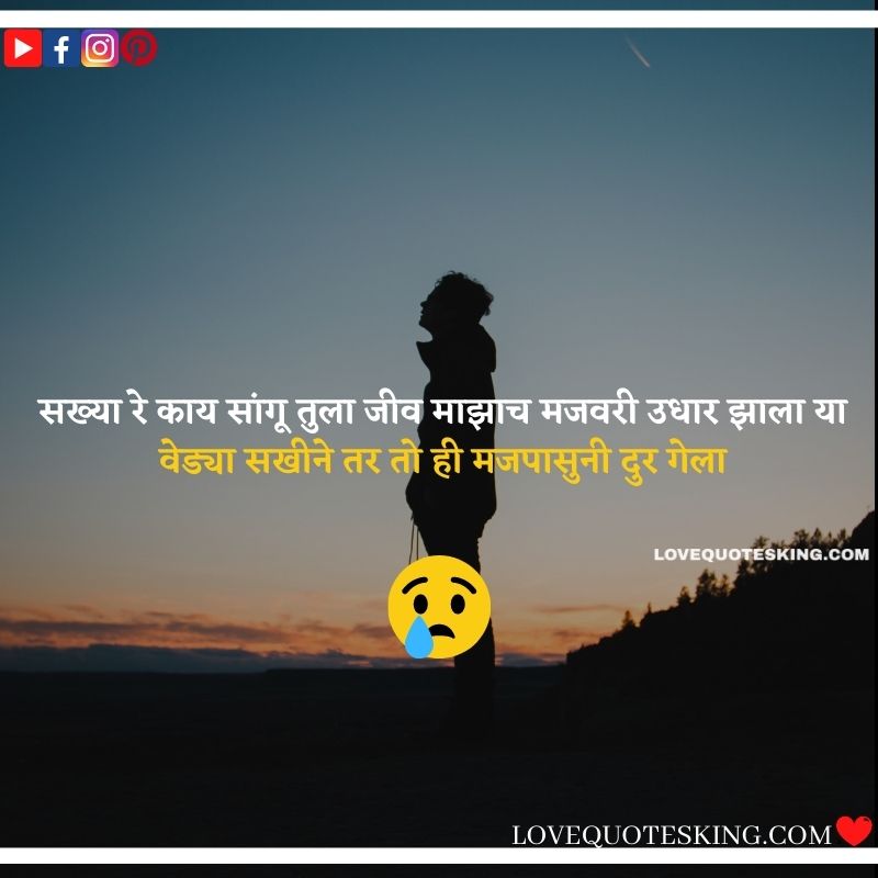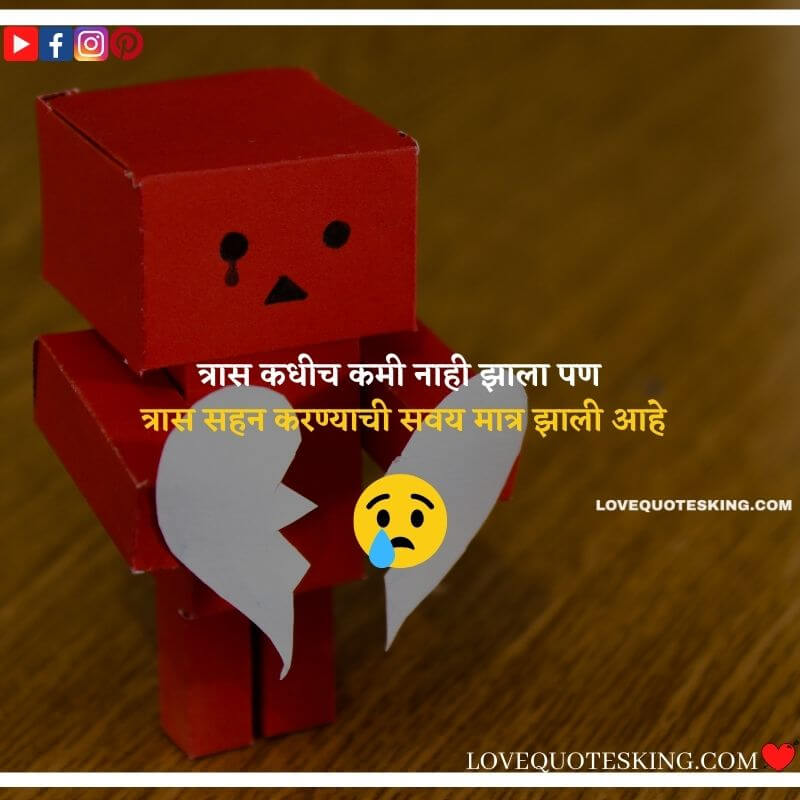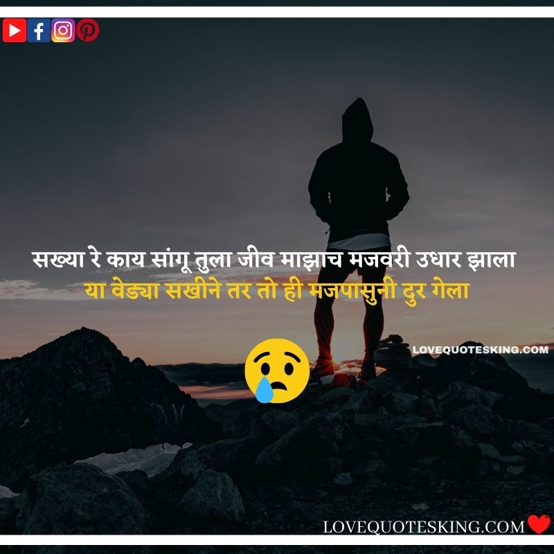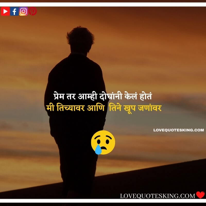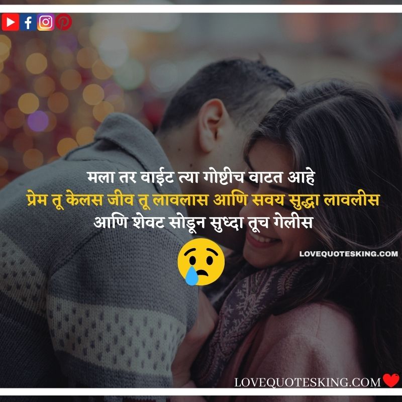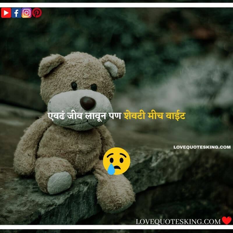 मला तर वाईट त्या गोष्टीच वाटत आहे प्रेम तू केलस जीव तू लावलास आणि सवय सुद्धा लावलीस आणि शेवट सोडून सुध्दा तूच गेलीस