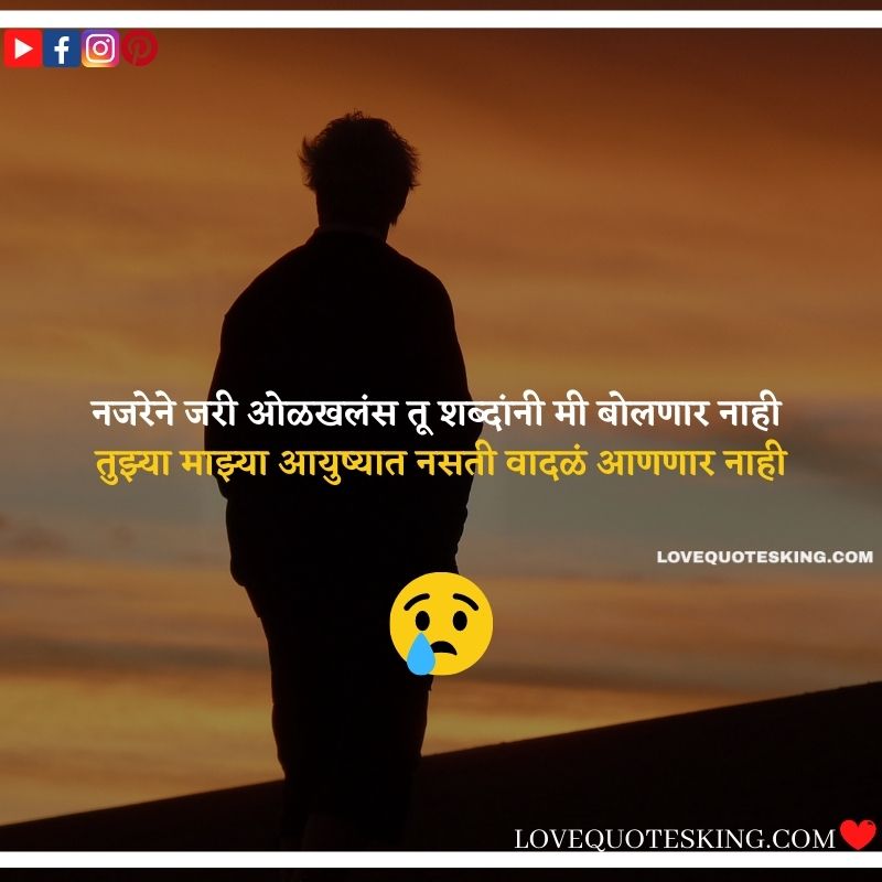 नजरेने जरी ओळखलंस तू शब्दांनी मी बोलणार नाही तुझ्या माझ्या आयुष्यात नसती वादळं आणणार नाही