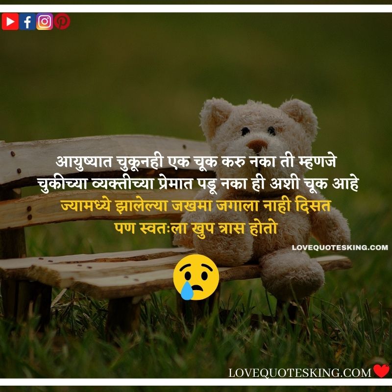 आयुष्यात चुकूनही एक चूक करु नका ती म्हणजे चुकीच्या व्यक्तीच्या प्रेमात पडू नका ही अशी चूक आहे ज्यामध्ये झालेल्या जखमा जगाला नाही दिसत पण स्वतःला खुप त्रास होतो