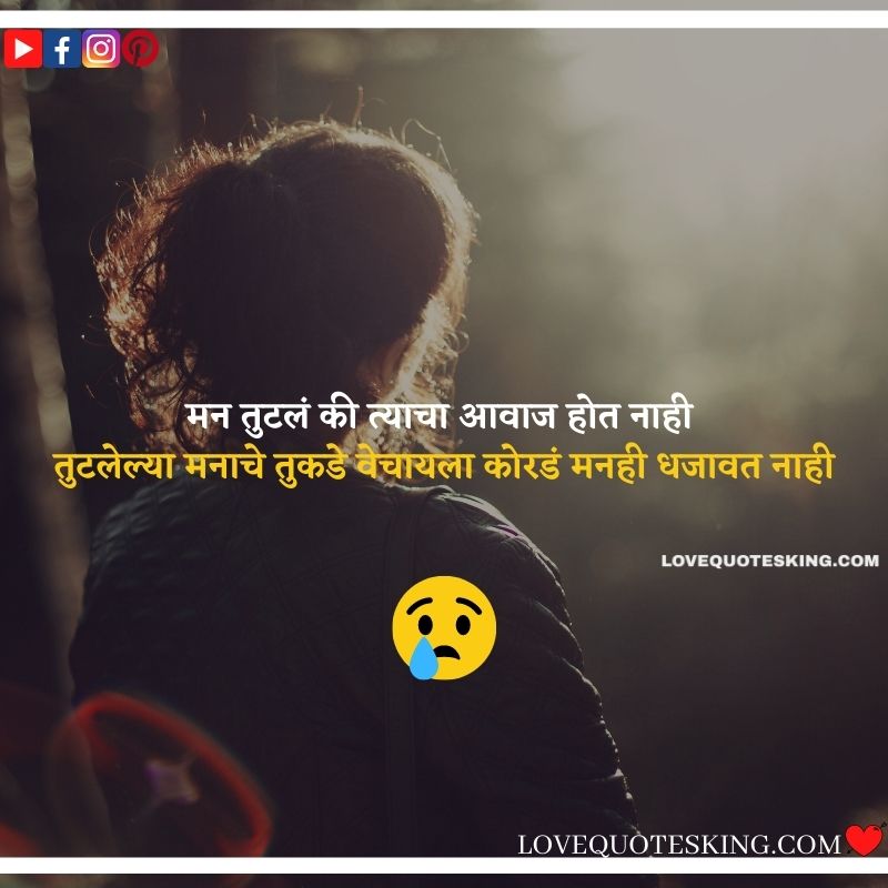 मन तुटलं की त्याचा आवाज होत नाही तुटलेल्या मनाचे तुकडे वेचायला कोरडं मनही धजावत नाही