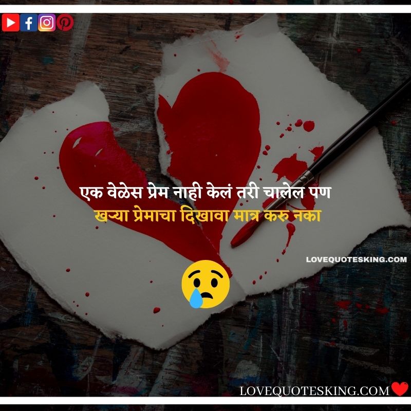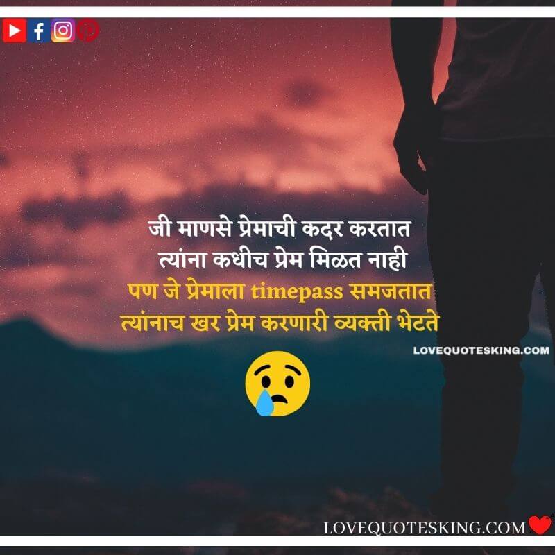 जी माणसे प्रेमाची कदर करतात त्यांना कधीच प्रेम मिळत नाही पण जे प्रेमाला timepass समजतात त्यांनाच खर प्रेम करणारी व्यक्ती भेटते