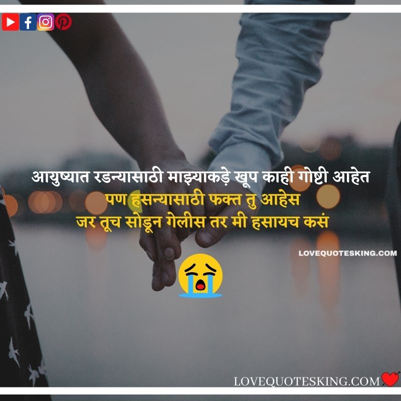 आयुष्यात रडन्यासाठी माझ्याकड़े खूप काही गोष्टी आहेत पण हसन्यासाठी फक्त तु आहेस जर तूच सोडून गेलीस तर मी हसायच कसं