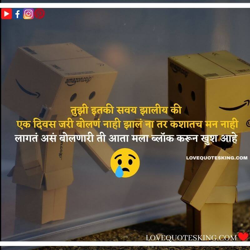 तुझी इतकी सवय झालीय की एक दिवस जरी बोलणं नाही झालं ना तर कशातच मन नाही लागतं असं बोलणारी ती आता मला ब्लॉक करून खुश आहे