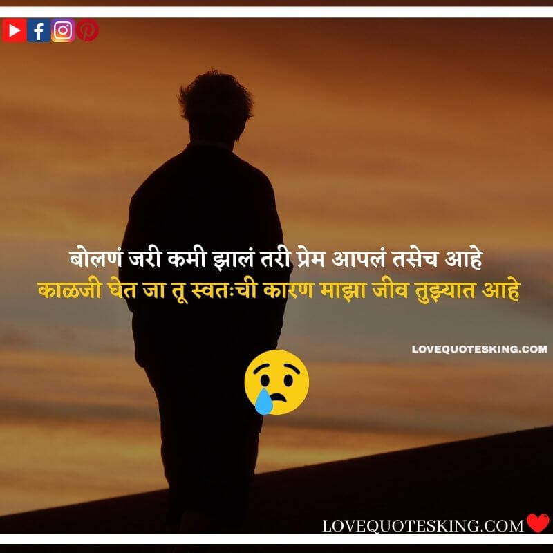 बोलणं जरी कमी झालं तरी प्रेम आपलं तसेच आहे काळजी घेत जा तू स्वतःची कारण माझा जीव तुझ्यात आहे