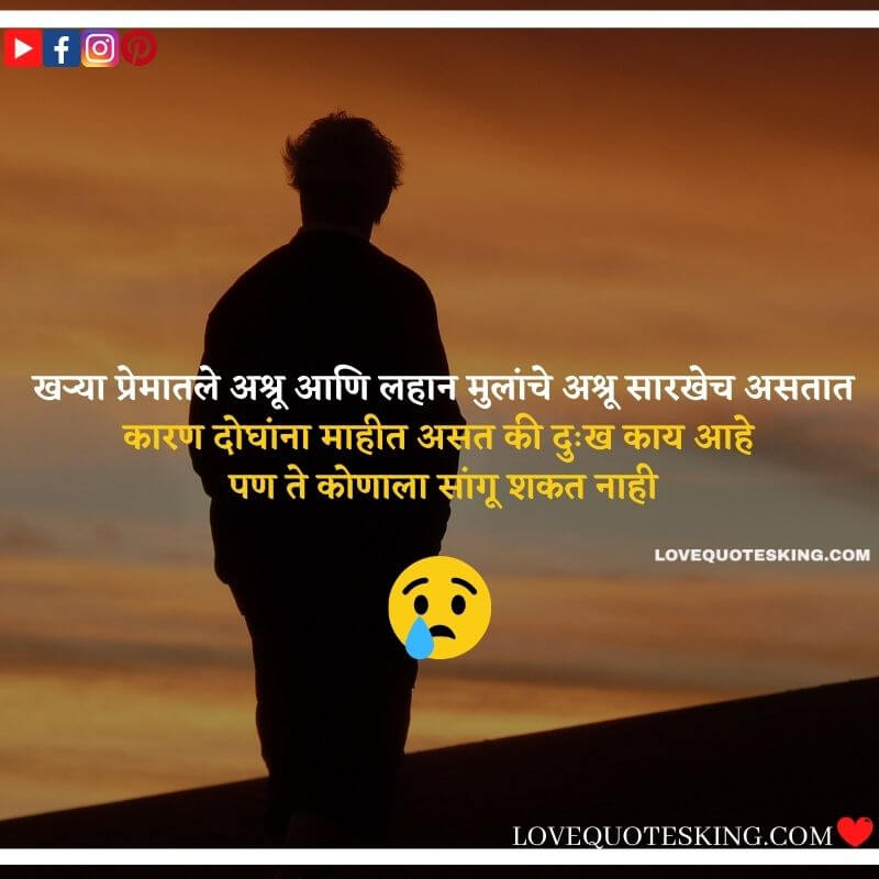 खऱ्या प्रेमातले अश्रू आणि लहान मुलांचे अश्रू सारखेच असतातकारण दोघांना माहीत असत की दुःख काय आहे पण ते कोणाला सांगू शकत नाही