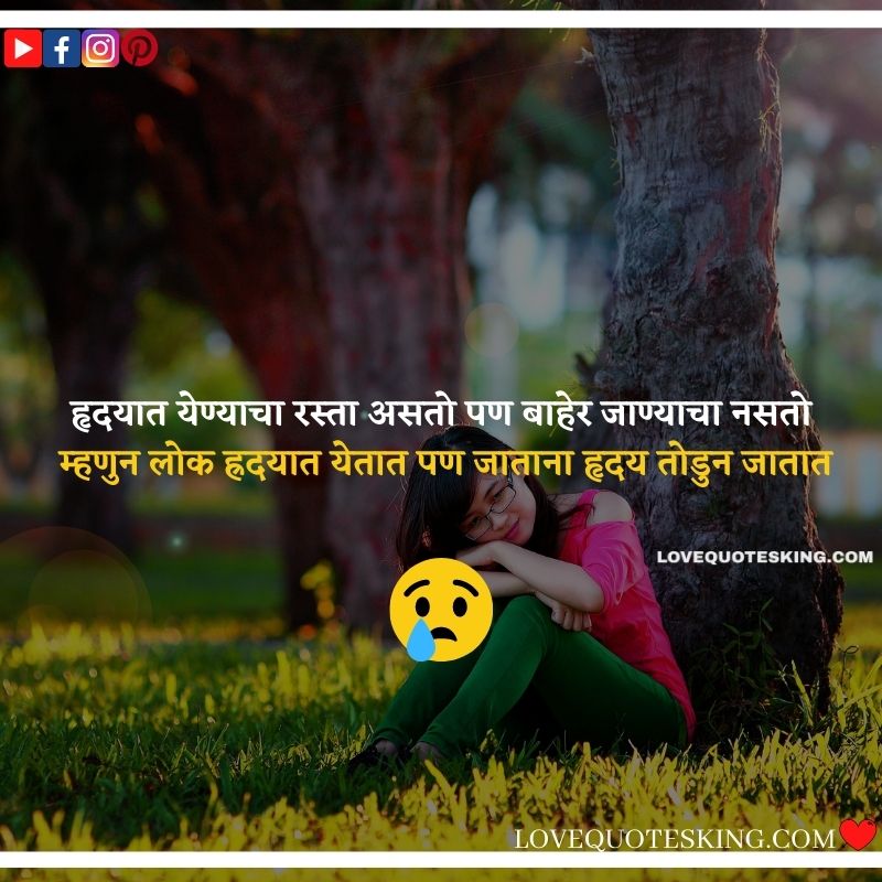 हृदयात येण्याचा रस्ता असतो पण बाहेर जाण्याचा नसतो म्हणुन लोक ह्रदयात येतात पण जाताना हृदय तोडुन जातात