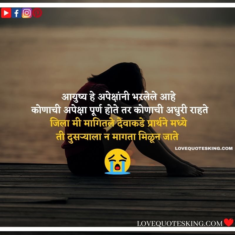 आयुष्य हे अपेक्षांनी भरलेले आहे कोणाची अपेक्षा पूर्ण होते तर कोणाची अधुरी राहते जिला मी मागितले देवाकडे प्रार्थने मध्ये ती दुसऱ्याला न मागता मिळून जाते