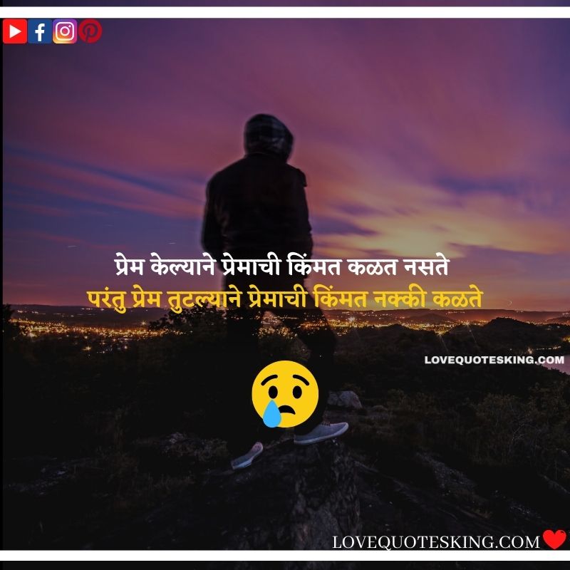 प्रेम केल्याने प्रेमाची किंमत कळत नसते परंतु प्रेम तुटल्याने प्रेमाची किंमत नक्की कळते