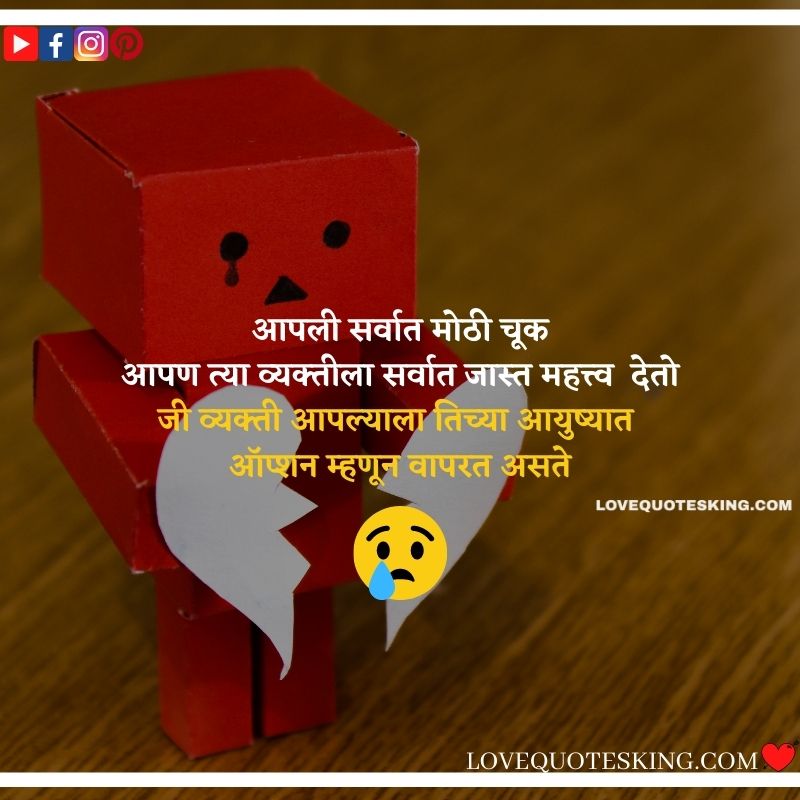 आपली सर्वात मोठी चूक आपण त्या व्यक्तीला सर्वात जास्त महत्त्व देतो जी व्यक्ती आपल्याला तिच्या आयुष्यात ऑप्शन म्हणून वापरत असते