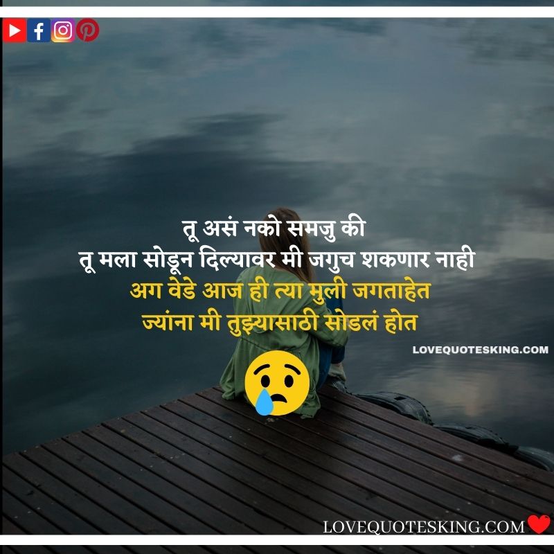तू असं नको समजु की तू मला सोडून दिल्यावर मी जगुच शकणार नाही अग वेडे आज ही त्या मुली जगताहेत ज्यांना मी तुझ्यासाठी सोडलं होत