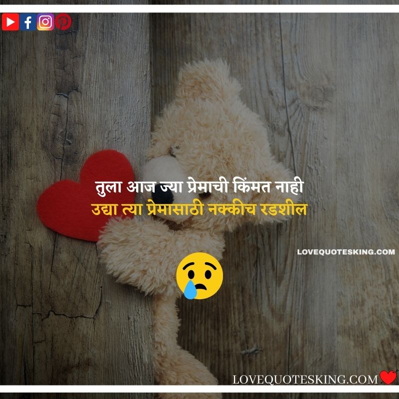 तुला आज ज्या प्रेमाची किंमत नाही उद्या त्या प्रेमासाठी नक्कीच रडशील