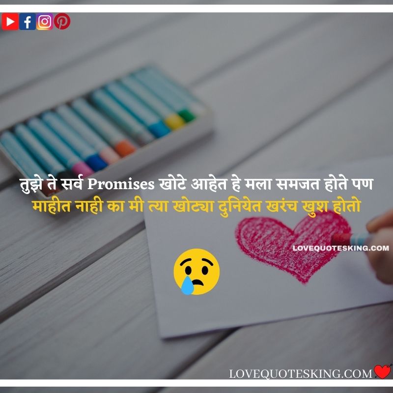 तुझे ते सर्व Promises खोटे आहेत हे मला समजत होते पण माहीत नाही का मी त्या खोट्या दुनियेत खरंच खुश होतो
