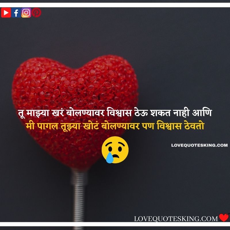 तू माझ्या खरं बोलण्यावर विश्वास ठेऊ शकत नाही आणि मी पागल तूझ्या खोटं बोलण्यावर पण विश्वास ठेवतो