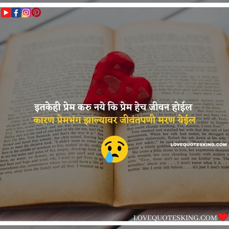 इतकेही प्रेम करु नये कि प्रेम हेच जीवन होईल कारण कारण प्रेमभंग झाल्यावर जीवंतपणी मरण येईल